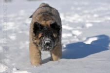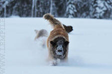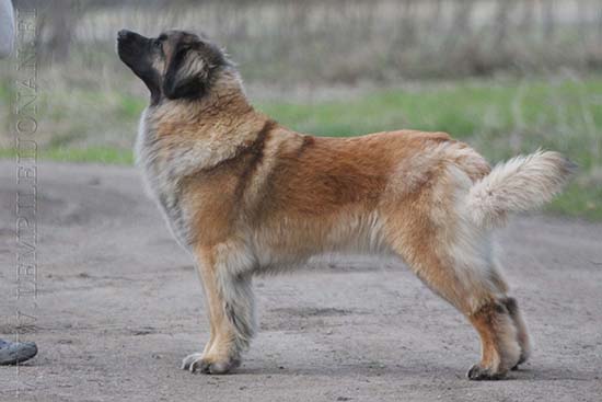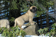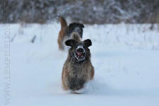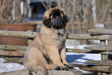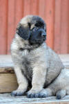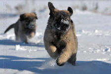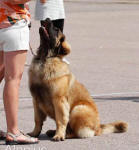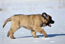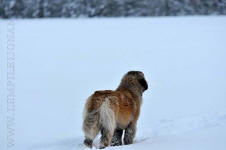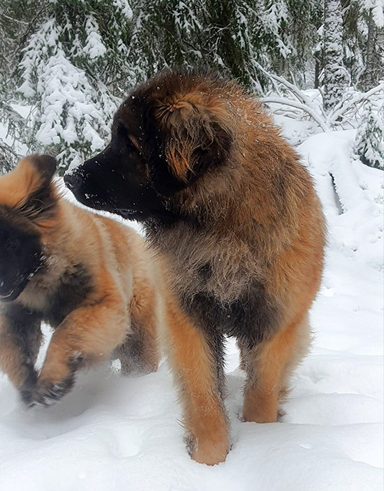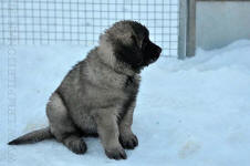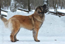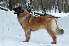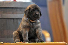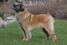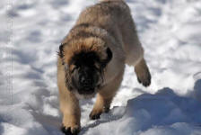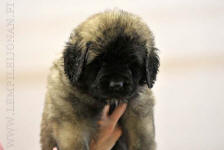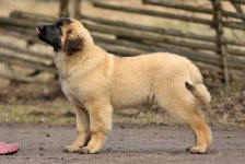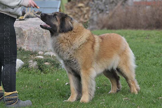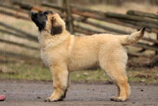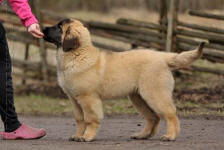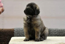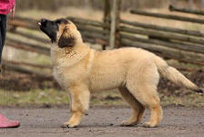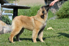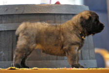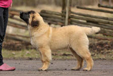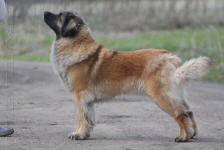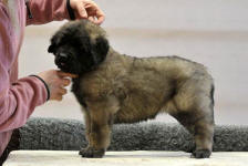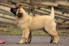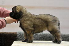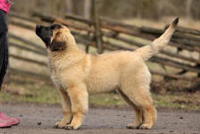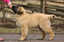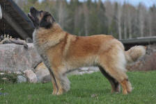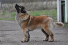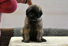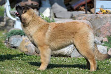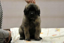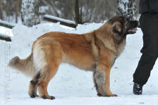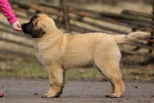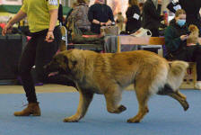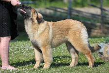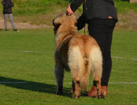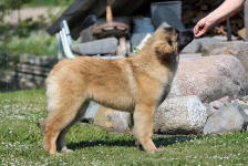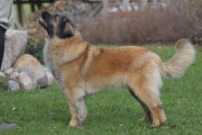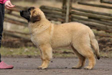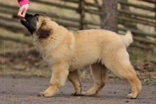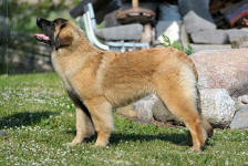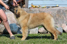 9 kk, erinomainen tyyppi ja oikeat mittasuhteet, ikäänsä nähden hyvin kehittynyt, oikea purenta, oikeanmallinen narttumainen pää joka saa vielä täyttyä, miellyttävä ilme, hyvät silmät korvat ja maski, erittäin hyvä ylälinja, sopiva vahvuus, hyvin kulmautunut, hyvä karvanlaatu, ei tänään täydessä karvassa, erinomaiset ulottuvat liikkeet, miellyttävä käytös. |