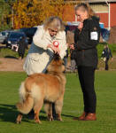 15 kk. Hyvä koko, narttumainen olemus. Hyvät mittasuhteet. Oikealinjainen nartun pää. Hyvät silmät. Hyvä kaula ja ylälinja. Hyvä runko. Hyvä leveä lantio. Eturinta saa vielä täyttyä. Sopiva luuston vahvuus. Aavistuksen pehmeä välikämmen. Hieman niukasti kulmautunut edestä, hyvin takaa. Liikkuu lähes yhdensuuntaisesti hyvällä askelpituudella hyvin itsensä kantaen. Turkki ei parhaassa mahdollisessa kunnossa tänään. Esiintyy ja esitetään erittäin hyvin.