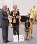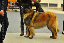21kk. Erinomaiset mittasuhteet, kookas vahva narttu, jossa selvä sukupuolileima, pitkä nartun pää, jossa vahva kuono-osa. Hyvä ilme. Erinomainen kaula ja ylälinja. Hyvä runko. Täyteläinen eturinta. Hyvin ja tasapainoisesti kulmautunut. Vahva luusto, kauniit käpälät. Liikkuu erinomaisesti joka suunnasta. Upea maski, hyvä turkki. Näyttävä narttu. Esitetään hyvin. |